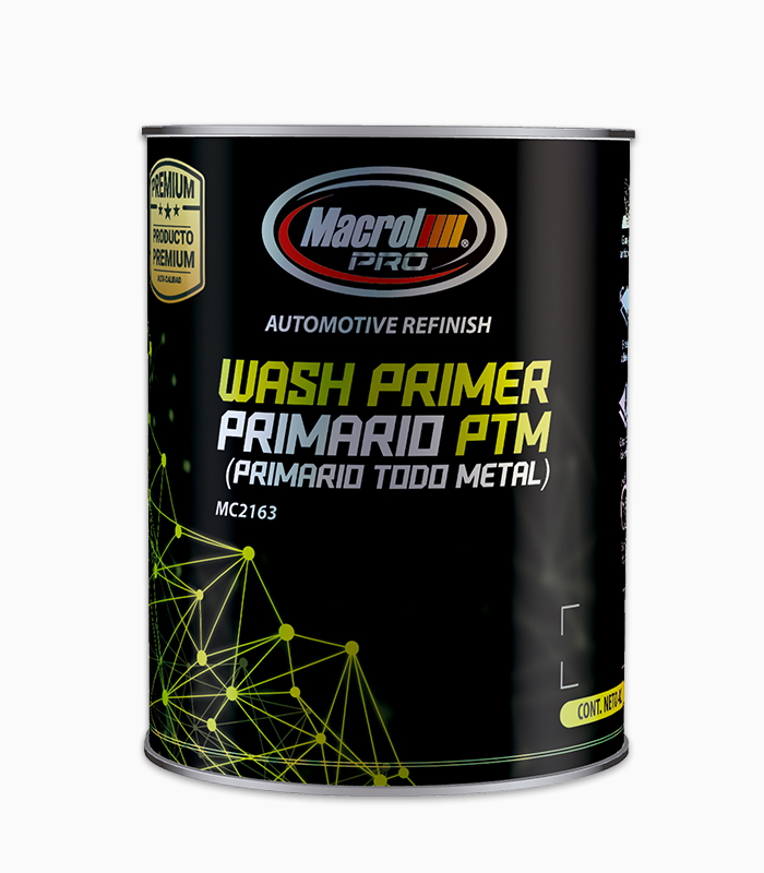 El PTM (primario todo metal) Wash Primer, es un producto de dos componentes que proporciona imprimado al sistema de repintado automotriz, cuando se trabaja sobre sustratos nuevos en lámina desnuda e incluso sobre materiales no ferrosos, aluminio galvanizado, latón, cobre, acero inoxidable y otras aleaciones donde ningún otro primario tiene adherencia. Además, posee excelentes propiedades anticorrosivas.